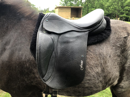 En sadelpad med unika egenskaper. Ett hantverk med perfekt passform av äkta Isländska lammskinn. Upplev närkontakt, följsamhet och frihet med det mjukaste materialet mot din hästs rygg!